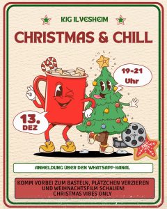 Am Samstag, den 13.12.25, werden wir von 19-21 Uhr einen gemütlichen Abend mit Weihnachtsbasteleien, Plätzchen und einem Film verbringen.🍪🎄✂️